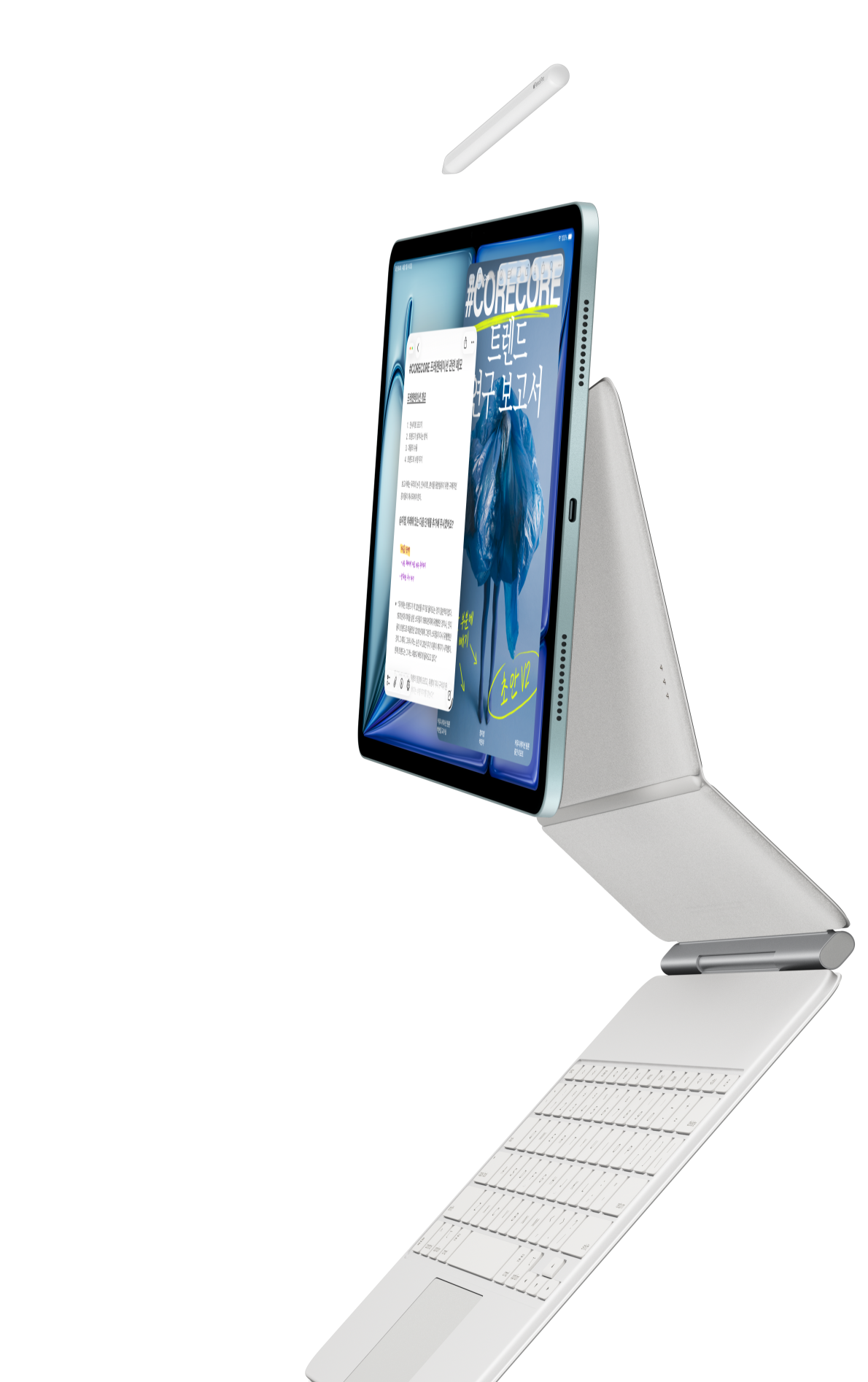 Apple Pencil은 그림을 그리고, 손글씨를 쓰고, 필기를 하는 행위가 어떤 느낌으로 이루어져야 하는지에 대한 기준을 제시합니다. 직관적이고, 정밀하면서도 사뭇 신기롭죠. 픽셀 단위의 정밀함에 극히 짧은 지연 시간, 기울기 감지 기능, 팜리젝션 기능까지 갖췄답니다. Apple Pencil Pro는 여기에 더욱더 많은 기능을 더해 전에 없던 방식으로 당신의 아이디어에 생명을 불어넣을 수 있게 해줍니다.2