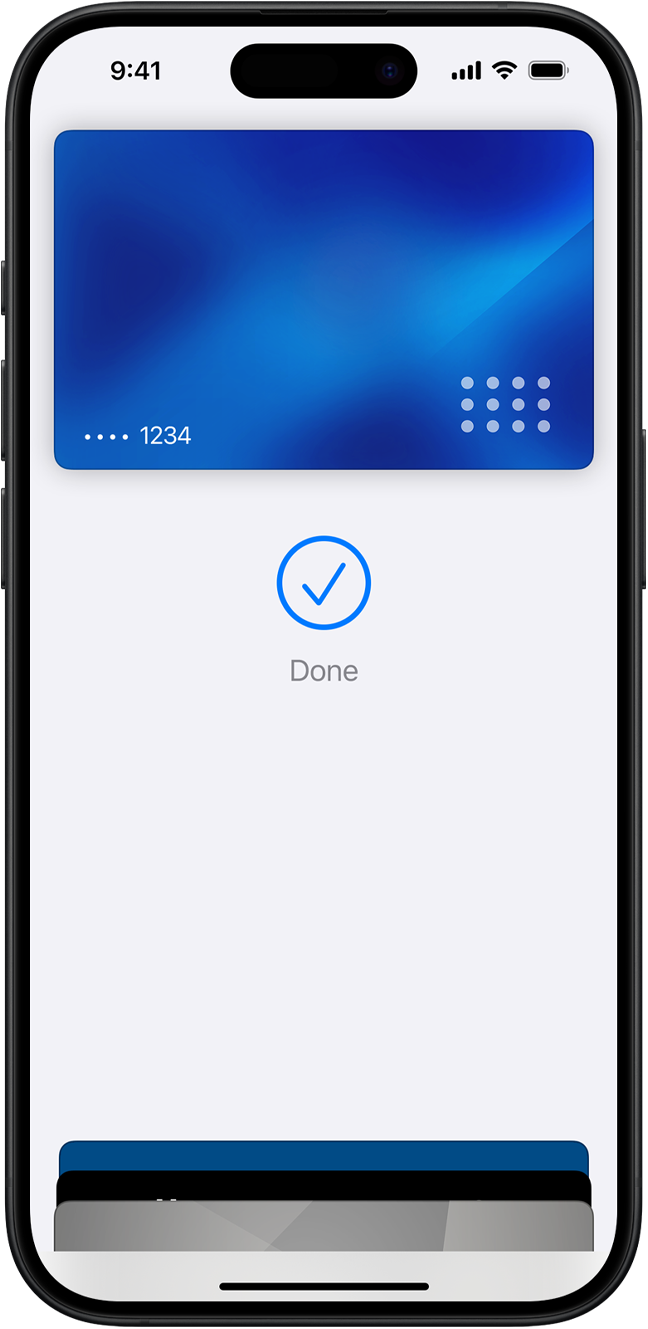 Tap more. Touch less. Apple Pay works right from your device, helping you avoid touching buttons and terminals, handling cards, and exchanging cash. Every purchase requires Face ID, Touch ID, or a passcode — helping to keep your security in your hands.